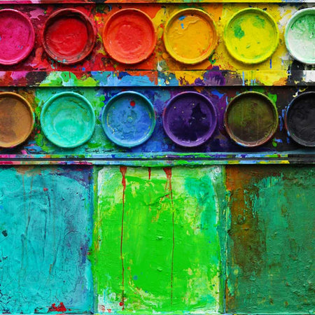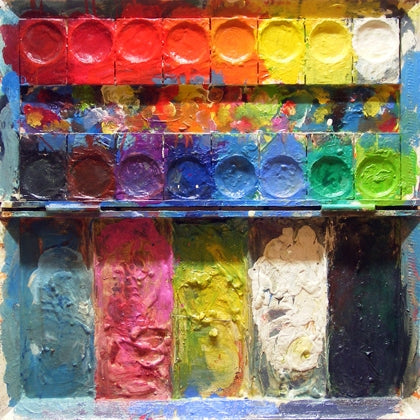Abstract painting in luminous ochre yellow (2019, 70x100 cm)